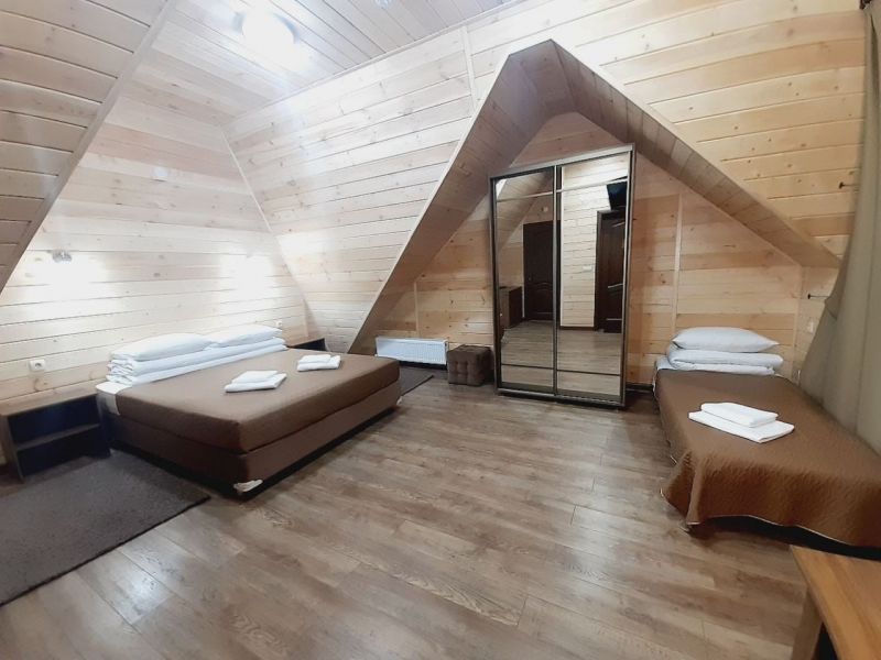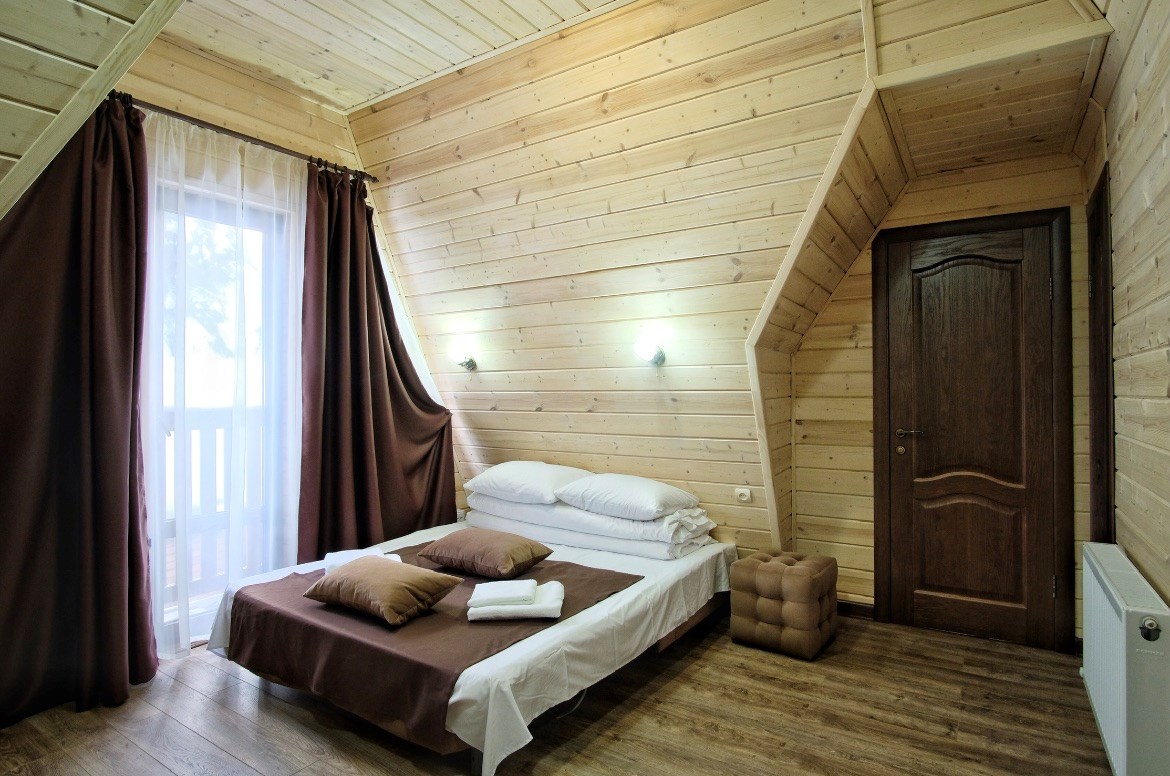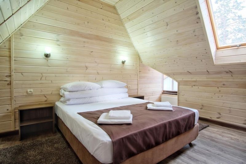 На территории комплекса гости найдут всё для расслабления и активного досуга: русскую баню на дровах, зону барбекю с беседкой, детскую площадку с батутом и уютное кафе-столовую с простой и вкусной кухней. Уединённый лесной участок на территории идеален для прогулок, а организация экскурсий поможет спланировать знакомство с окрестностями.
